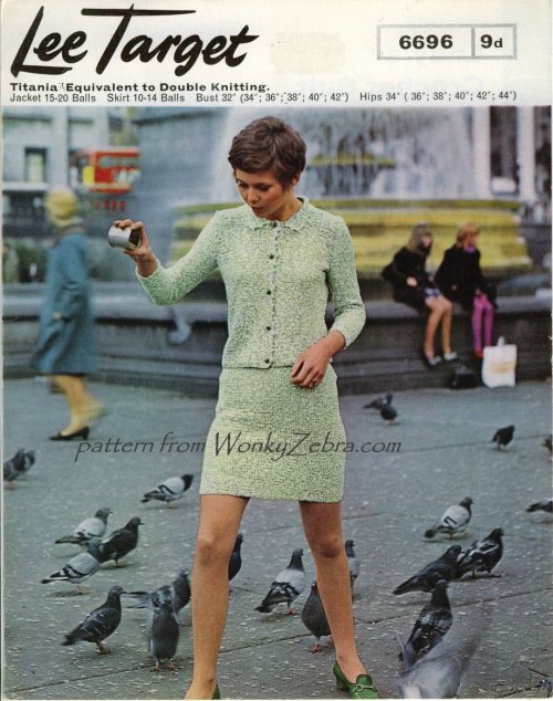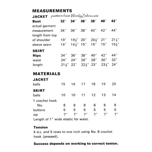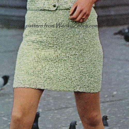 A vintage crochet PDF pattern for a neat little sixties mod suit.